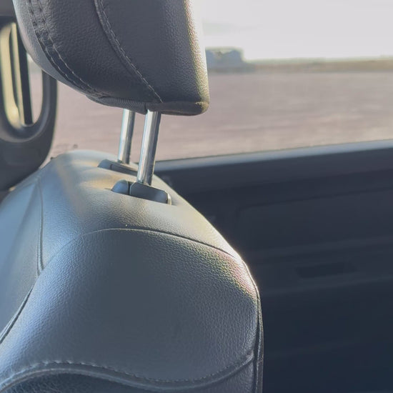 ✔ Clips securely onto most vehicle headrests